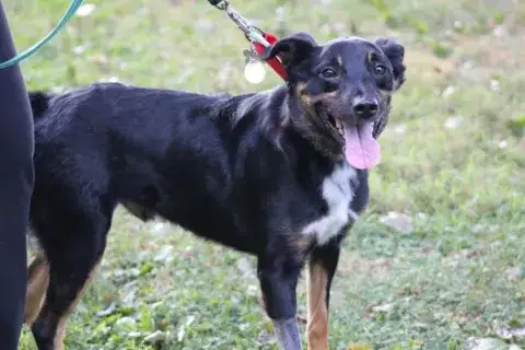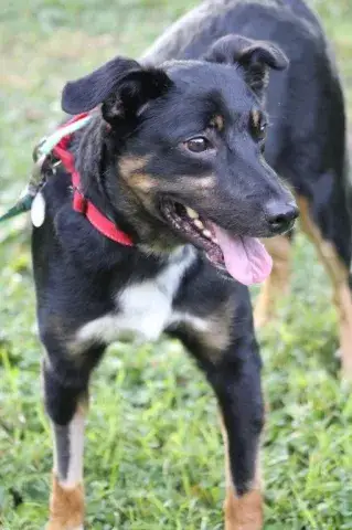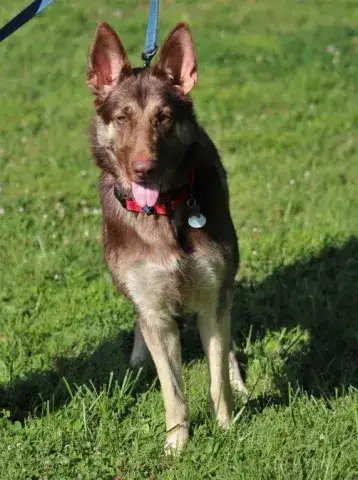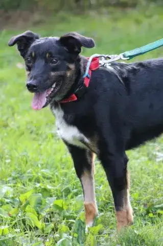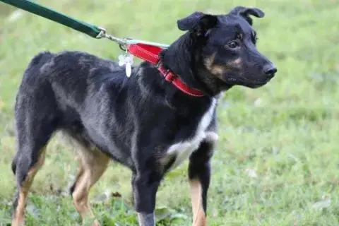 This handsome pup has not had the best start in life. He has lived outdoors on a chain, not taught manners, leash skills or training. Thankfully someone got him out of the situation and surrendered him to us. He is one busy boy, he will jump on you, he will mouth you, he will pull you on the leash. But with training, structure and direction he will learn to be well mannered. He is still just a puppy at 8 months old, so expect high energy, playfulness, chewing things and all of the antics that come with having a young dog. You absolutely need the time to provide him with daily exercise and structure, at this age he is no couch potato.