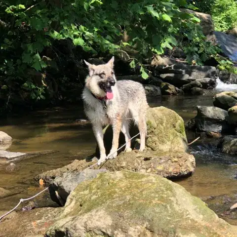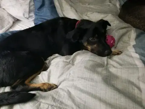 Chelsea came to us from a shelter, we have no idea how or why she ended up there. She has some hair loss and an ear infection which is being treated. She is now receiving proper care and is on the mend. Chelsea is somewhat skittish when meeting new people, but given time she warms up quickly. Structure, guidance and training will help built her confidence. She absolutely loves the company of another dog, she is very playful and more relaxed in their company.