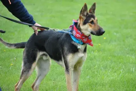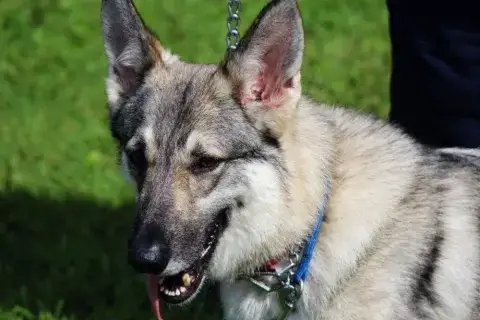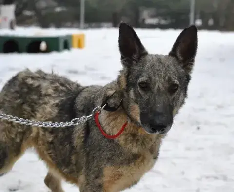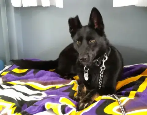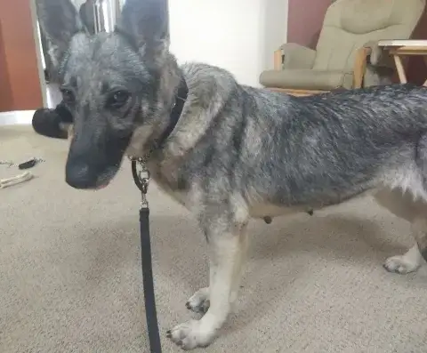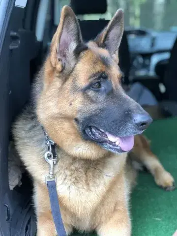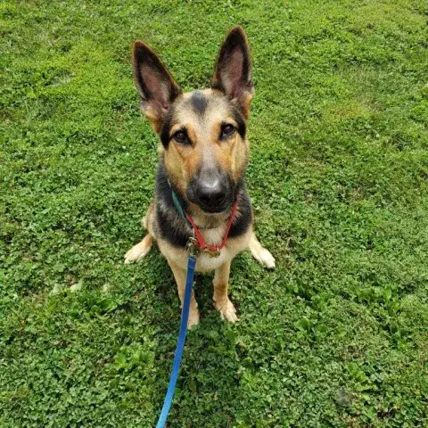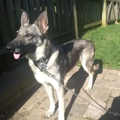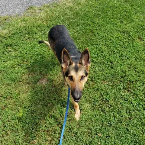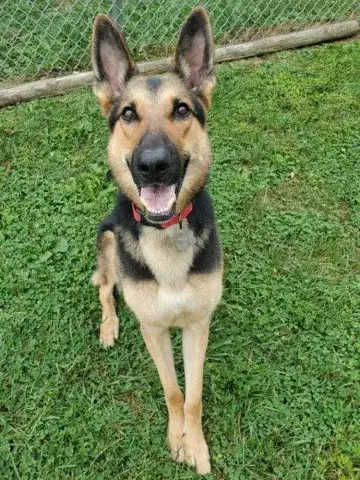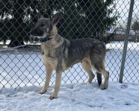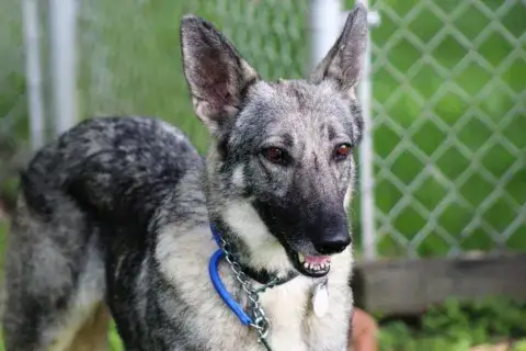 Archie came to us after being confiscated for cruelty. Witnesses saw his former owner beating him with a metal baton and the police were called. Archie sustained trauma to his head, which left an open wound to his head along with a fractured frontal sinus cavity. He also has fractured teeth which are being extracted. There were old scars possibly from earlier abuse. Archie received immediate medical treatment for his injuries. Although Archie is a mix breed we could not leave him behind. We welcomed him into MAGSR with open arms as an honorary GSD. Archie is currently residing in medical care under the watchful eyes of vets. So far they have seen no deficits, and he seems to have recovered both physically and mentally from traumatic event. Archie is a fun, friendly, high energize boy. He loves to romp around and play a good game of fetch. He will require a family that can match his energy level in order for him to receive the exercise he will need. Archie is needing a family that will treat him with kindness, that will provide him with a safe and stable home, lots of love and care.