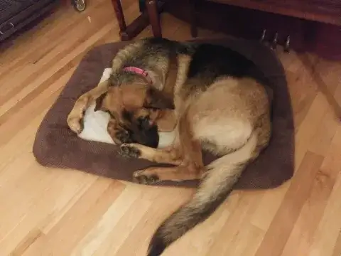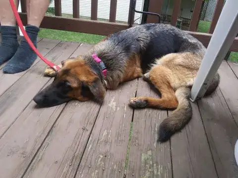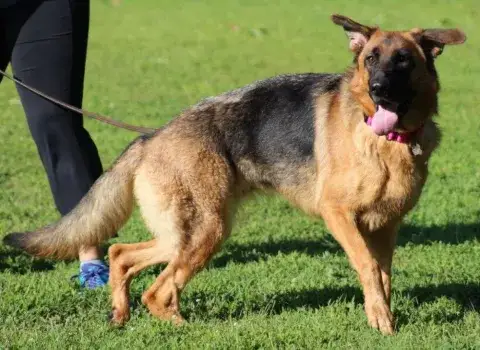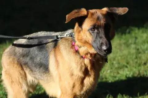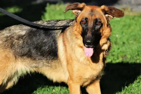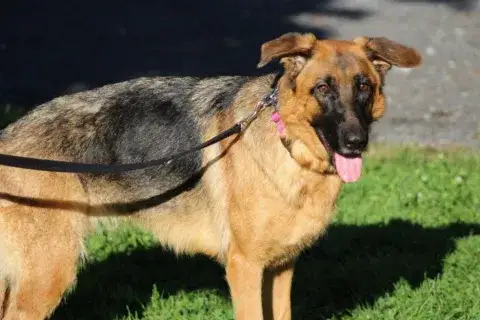 Riley is such a sweet, friendly girl. She did live with another male GSD and they got along well, and we were told she is good with cats. She loves playing Frisbee and fetch with a ball. Riley is looking for a new family that will love and care for her as much as her former family has. Please open your heart and home to Riley or one of our other dogs.