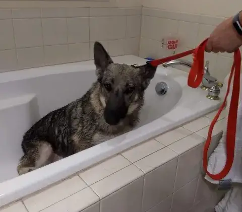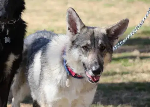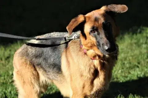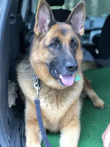 Vader was surrendered to a shelter as his military dad was deployed overseas. He is a large friendly boy, enjoys his humans and gets along well with other dogs. Vader is settling into a foster home nicely.