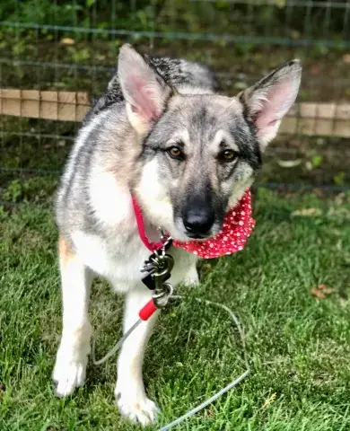 Rosie came to us from a home where she lived with other dogs and children. She is a little skittish when first meeting new people, but soon after she is a playful and happy puppy. Rosie will require training, ongoing socialization, structure, guidance and of course a commitment for her lifetime. Puppies are a lot of work, they get into things they shouldn’t, they have accidents in the home, have lots of energy and require a lot of attention. Please be sure you have the time and patience it takes to raise a well mannered and balanced pup.