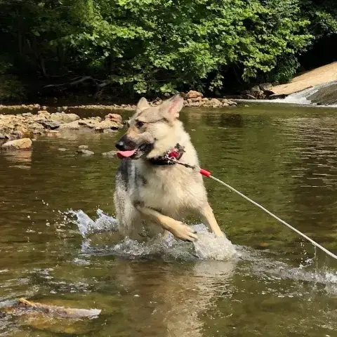 River came to us from a home where he lived with other dogs and children. He is a little skittish when first meeting new people, but soon after he is a playful and happy puppy. River will require training, ongoing socialization, structure, guidance and of course a commitment for his lifetime. Puppies are a lot of work, they get into things they shouldn’t, they have accidents in the home, have lots of energy and require a lot of attention. Please be sure you have the time and patience it takes to raise a well mannered and balanced pup.