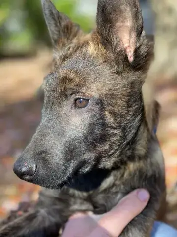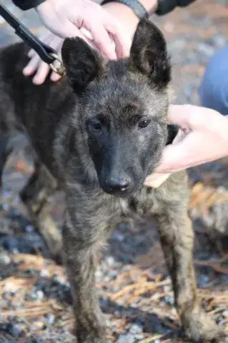 Luc, along with his siblings Liam and Lieve lived outside without proper care or an adequate amount of food for growing puppies. Thankfully they were brought to our attention and brought into our care. They were underweight, but with proper nutrition they have gained weight. Luc is the runt of the litter, he is missing the tip of one of his ears, we do not know what happened. The pups are a mix of Dutch Shepherd (dad) and Belgian Malinois (mom). Both of these breeds are very high energy dogs that require a lot of exercise of both their bodies and minds, along with obedience training, ongoing socialization and direction. It is imperative that you have the time, everyday, to work with them on their training and can meet their exercise needs. We will only consider adopters that have prior experience with working line dogs. Please remember that puppies are a lot of work and require a lot of attention from their family - puppies are a ten to twelve year commitment.