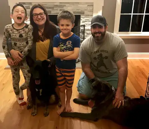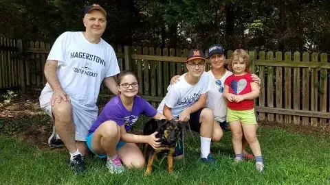 Murphy made his way to us from a shelter where he was a stray.  We have no past history for him, so we are getting to know him.  He requires a slower approach when meeting new people.   He is in need of training which will help him learn good manners, build his confidence and bond with his new family.