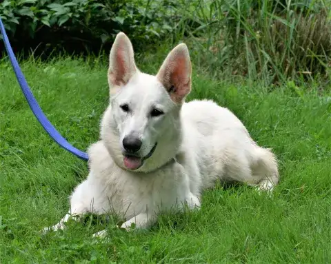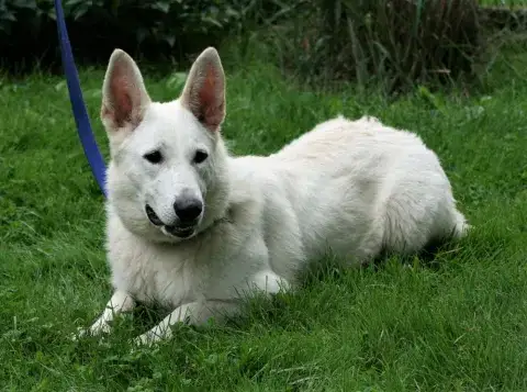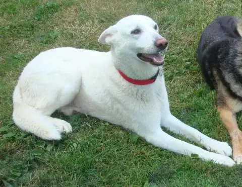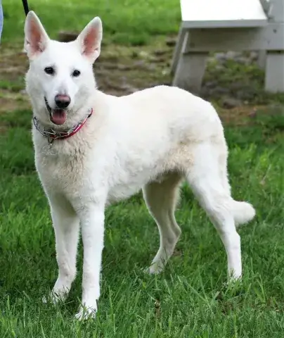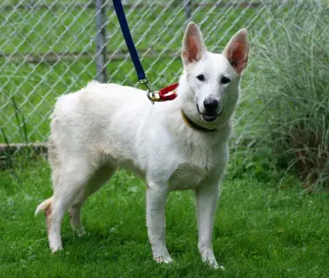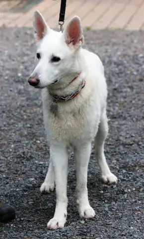 Copper is a very gentle and loving young dog, and so handsome with his beautiful white coat.  He is on the sensitive and introverted side of things and so is very comfortable and doing well in his quiet foster home, with the older and easygoing resident dogs.  Copper needs extra time to meet new people, and needs a light touch to learn and trust in new situations, but once he accepts you he is very sweet and very affectionate, and wants nothing more than just to be with you.  With careful exposure he is getting more comfortable each day with crowds, loud noises, unexpected motion, etc., but he has limits and will do best in a more quiet, slow moving, and nurturing environment.  Copper is housebroken, crates well, loves other dogs, and loves to run with his foster dad for exercise. Copper is a gentle spirit that will make a wonderful addition to the right family that can provide the gentle but firm love and leadership he needs to thrive. Could that be you?