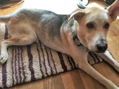Mochi has gotten comfortable in his foster home. Mochi is very social with his foster family and resident dog. He prefers to be in the room that his humans are in - he is a loving boy that will snuggle right up with his humans. Mochi loves to be scratched under his chin and behind his ears. He loves the resident children and everyone that comes to the house to visit. Mochi is housebroken and is learning his basic commands. He walks nicely on a leash, enjoys his time outside and even enjoys being brushed. Mochi loves to play with a ball although he's still working on the fetch component of ball playing. Mochi is great in the crate during the day but also has been no trouble whatsoever if given a room to hang out in while he waits for his humans. Are you ready for a fun loving boy that will adore you forever? If so, ask for Mochi!