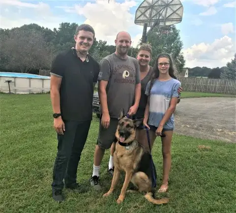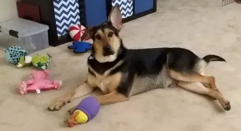 Kona has been to obedience training and was deemed a friendly, smart, stubborn dog. He has been gentle with a baby and toddler and never showed any aggression towards people. Kona thrived in a home with another Shepherd, cat, baby, and toddler. He would occasionally play a little rough with the cat but the cat ultimately always put Kona in his place. Kona does have a strong prey drive with small animals like squirrels and sometimes small dogs and cats.