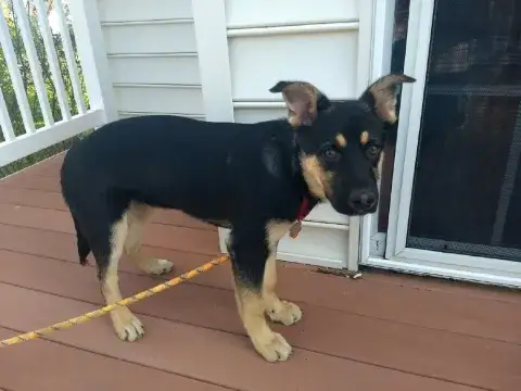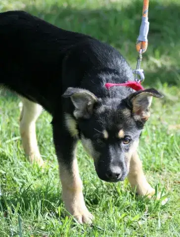 Kadian came to us a surrender, as her former person was not in the position to care for or keep her.  At 14 weeks old she has a whole lot to learn.  It is never too soon to start basic obedience training, as socialization with other dogs and people is very important, along with learning good puppy manners.  Puppies will chew things, have accidents, get into things and have lots of energy, so please be sure you have the time and patience it takes to raise a puppy.  Adopting a puppy is a commitment for their lifetime.