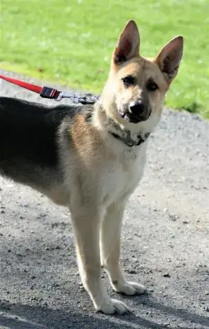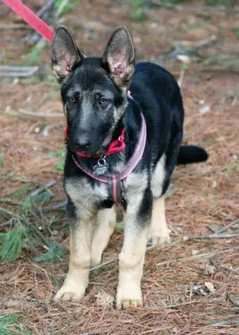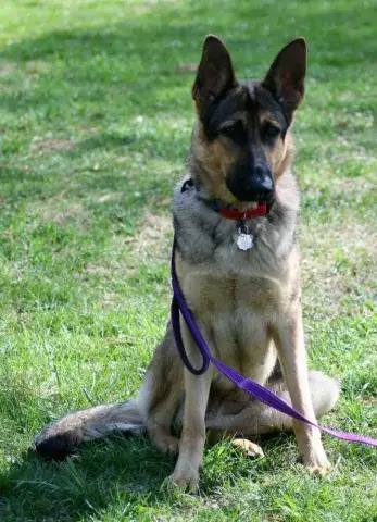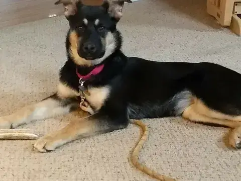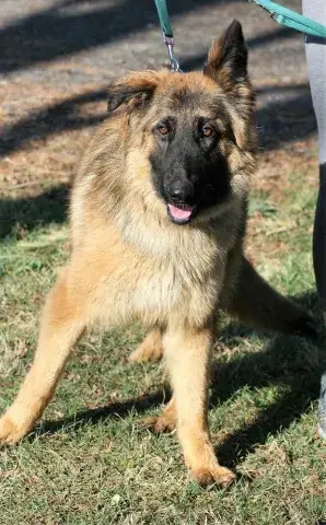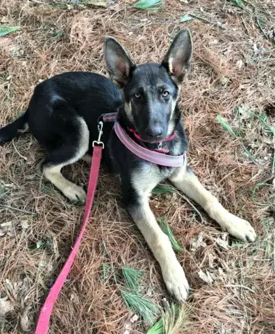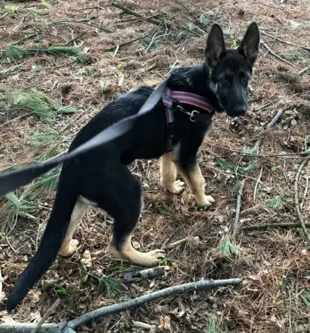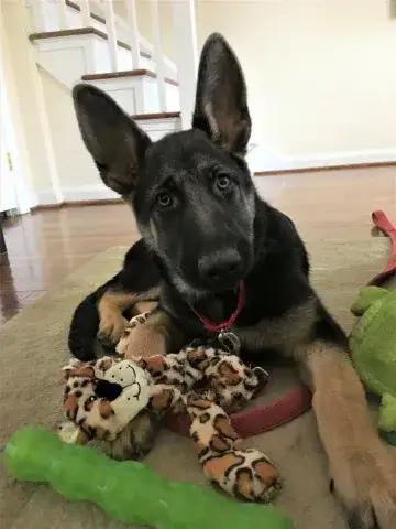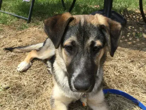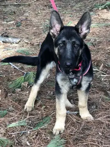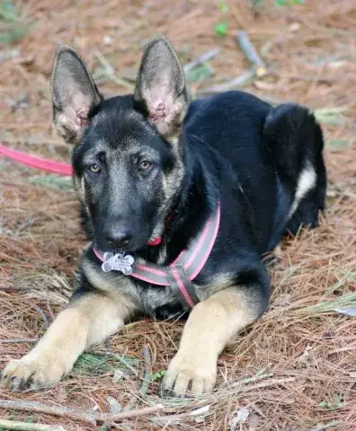Sapphire made her way to us from a shelter where she had been surrendered by her former owners.  They had told the shelter that she was good with children, dogs and cats.  She is in a foster living with young children and another GSD and getting along well.  We have not had her around cats.  She is a young, energetic girl that has had no training or guidance.  She's very trainable, she pays attention to her handler and is responsive to both food and praise.   A good training program, guidance from her family and exercise to burn off some that puppy energy are in order for beautiful Sapphire.