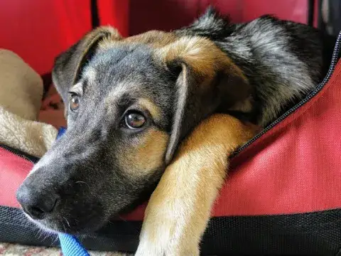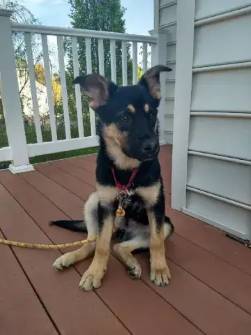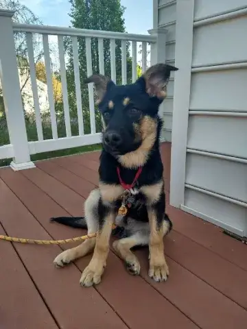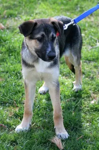 Boyka was surrendered to us as his former person was very busy with his graduate studies.  He knew that Boyka needed more time and attention then he could give him.  Boyka is very well behaved for a 7 month old puppy, he is housebroken and crate trained.  He will whine and bark when first going into his crate but will settle.  He absolutely loves the company of other dogs, both males and females, he wants to be near them all of the time.  He is currently in a foster home with another GSD and Boxer, both are seniors and he does so well with them.  He does have a lot of puppy energy, he enjoys going for walks, playing and running in the yard and a good game of keep away is a lot of fun.  He does not have perfect leash manners, but they aren't bad for a dog of his age.  He is a sponge and soaking up everything his foster mom is teaching him.  He has met children of varying ages and did well, but he does not take treats gently and his energy level may be too much for little ones.   Boyka is very ready for a good training program and a new forever family.