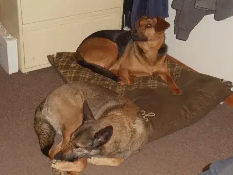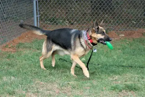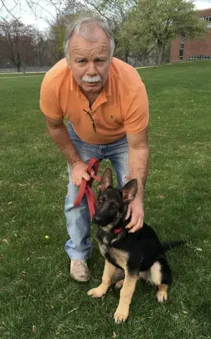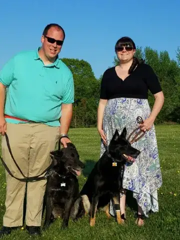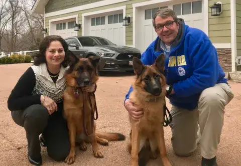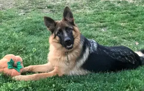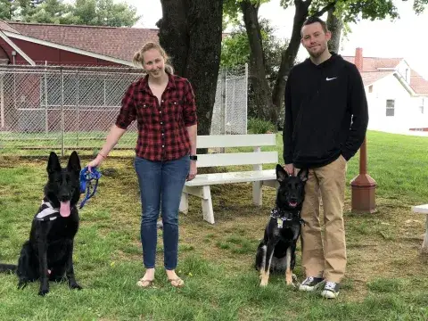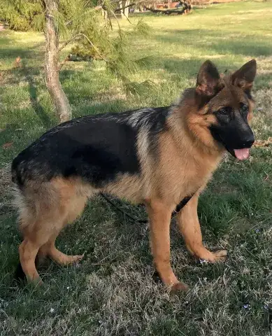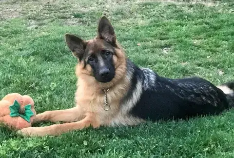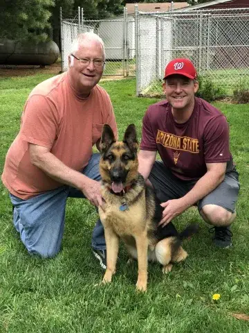 The past six months with Solomon have been an absolute blessing. Him and our female German Shepherd could not be a better match and are always together. Where one is, you will see the other. Solomon completed his beginner class through Dauntless and is currently half way through intermediate. He absolutely loves playing fetch, taking naps, chasing his sister female shepherd through the house, and laying with his person. He walks right in his crate and when we are in our room will just hang out in there. Solomon is absolutely in love with our god children. When they come over he loves playing the game Tag with them. He is very gentle with them and will lay with them or run with them throughout the house. He has been the perfect addition to the family. I am getting emotional typing this as I am thinking to myself “who really saved who?” All the best- Kate and Tyler Coburn