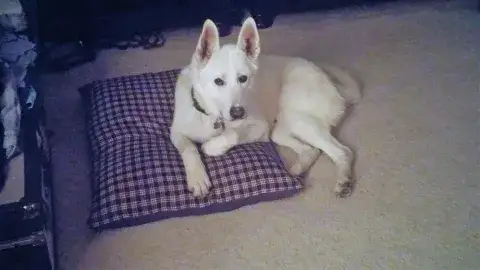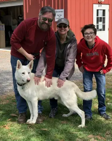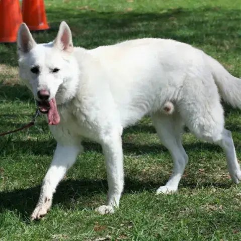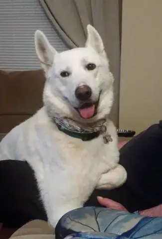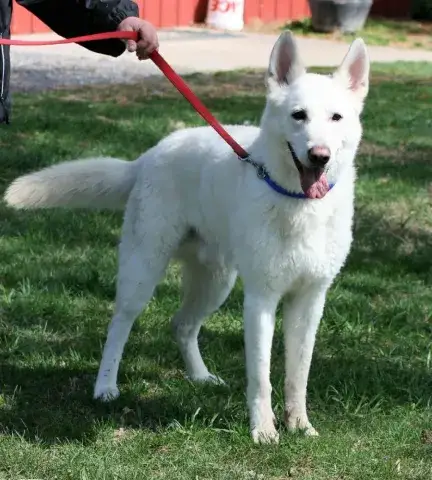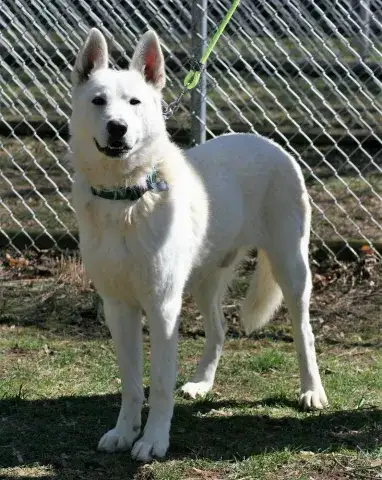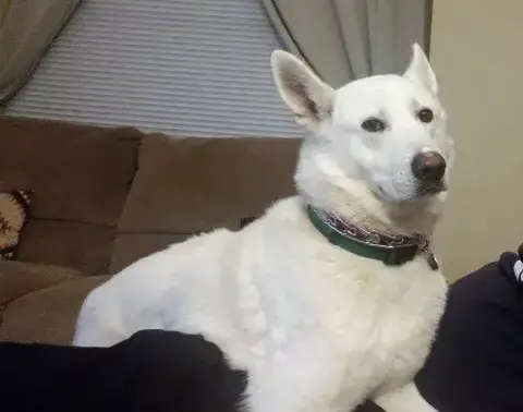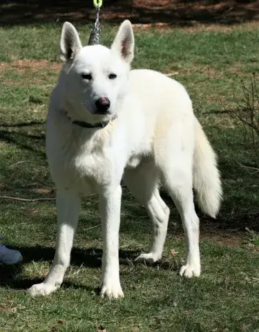 Samson came to us as an owner surrender.  Unfortunately his former family have their hands very full with medical needs, this left Samson home alone for too long.  He was very much loved and well cared for.  He is now looking for a new family, one that will love and care for him as much as his last family has.  Samson is a stunning, all white male GSD.  In his previous home he lived with young children and another male GSD.  Samson is a very smart boy, he can open doors using his mouth to turn the knobs, he can open a gate latch and knows how to get out of a wire crate.   He does need some basic obedience training, not only will this help him learn good manners, but it will also help to create a bond with his new family.  He enjoys spending as much as time as possible with his family.