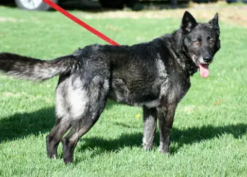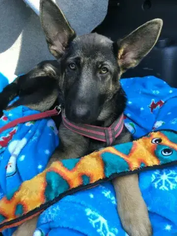Solomon came to us as an owner surrender.  Unfortunately his former family have their hands very full with medical needs, this left Solomon home alone for too long.  He was very much loved and well cared for.  He is now looking for a new family, one that will love and care for him as much as his last family has.  Solomon is a stunning, large, all black male with the shiniest coat.  In his previous home he lived with young children and another male GSD.  He does need some basic obedience training, not only will this help him learn good manners, but it will also help to create a bond with his new family.