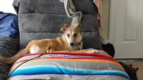 Aria is settling well in her foster home. She is very affectionate, sweet, and playful. Aria will easily crawl up into your lap and cuddle next to you. Belly rubs are the best. She is responding well to housebreaking and enjoys hanging out with her family, including the resident cats. She is very friendly and her foster mom is working on her manners when she gets excited meeting new people. Aria is a gem, so don't miss out on meeting her.