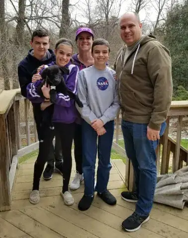 Luna came to us from a shelter so we have no history on her. We do know that it looks as though she has had multiple litters. Well her mom days are now over. It is her time to shine as a family pet. She is as sweet as can be with everyone she meets, a well behaved girl.