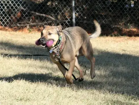 Brio came to us from a shelter. There is some confusion with regards to his age, his records have him as 2 years old, but many feel he is much younger. He still has many puppy mannerisms and looks like a puppy still. He has a lot of energy that will need to be dealt with by providing plenty of exercise and playtime. At this time he has no manners but this is something he is working on. He has no leash skills and jumps up on people to greet them. He is a friendly, goofy, happy go lucky boy. Training will go along way in helping him learn all that he needs to knows.