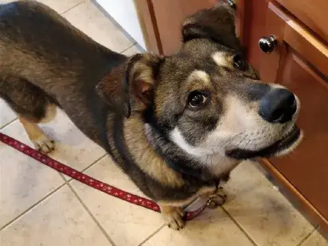 Cider was surrendered to us as his former person had allergies. His family reports that he is good with other dogs, children and cats. He is currently in a foster home living with other dogs and children, the foster does not have cats. He is a friendly boy and seems to have adjusted to his move quite well.
