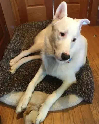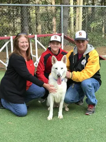 Star came to from a shelter so we have no history for her. In our care she has been friendly and well mannered. Of course she will need training, guidance and structure from her new family, along with time to settle in to a new home.