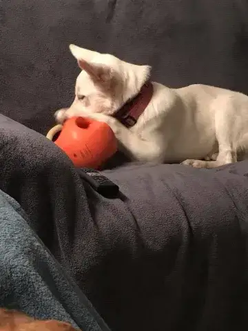 Otto's foster reports that being in a home seems new to him. He is frightened by the stairs and going through doorways. He has no idea what to do with toys. He has come out of his shell with one of the resident dogs, they enjoy romping around and playing. His foster dad is working with him daily to help him become more confident.