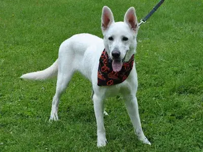 Sugar is a gorgeous young white female Shepherd. It is obvious that no one took the time to teach her anything or ever walked her on leash. Our volunteers are working with her on leash manners. She is a high energy girl who will need an active family. Training will go along way in teaching acceptable behavior and manners.