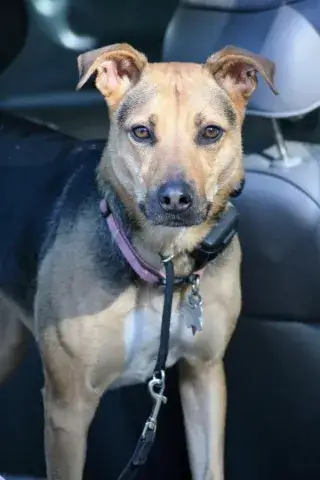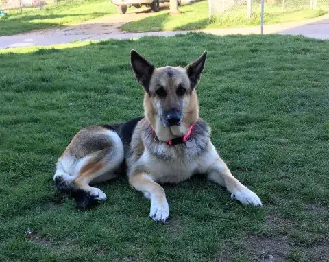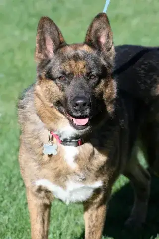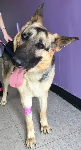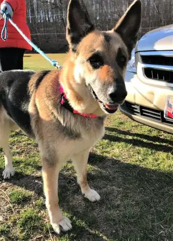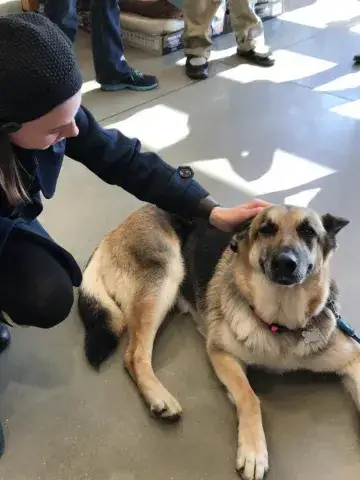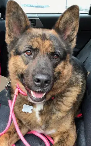 Mysti's former owner surrendered her as he did not have time for her and his brothers alpha female GSD was attacking her. This is the reason that Mysti has some scratches and scars on her nose/muzzle, but they make her no less beautiful. Mysti was being kept in an all black wire metal crate, which was too small for her, out in the sun in 80 degree temperatures. Mysti loves rope toys, kongs and knuckle bones which she will carry around in her mouth. She rides well in a vehicle and did well at her vet visit. She enjoys having her belly rubbed. With proper training, love and encouragement Mysti will be a wonderful family dog.