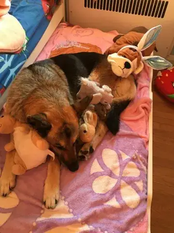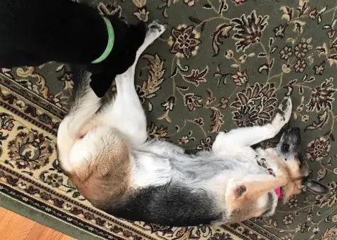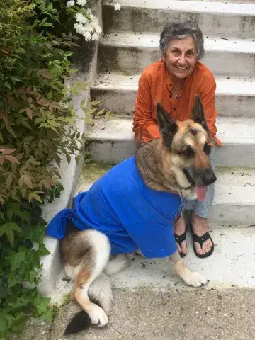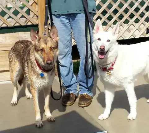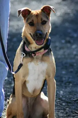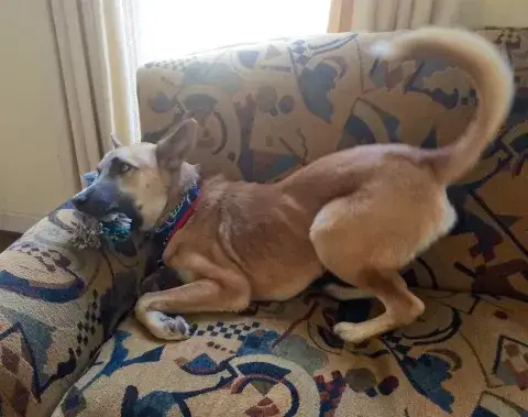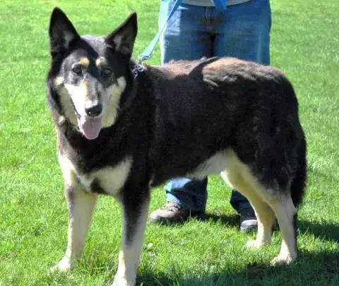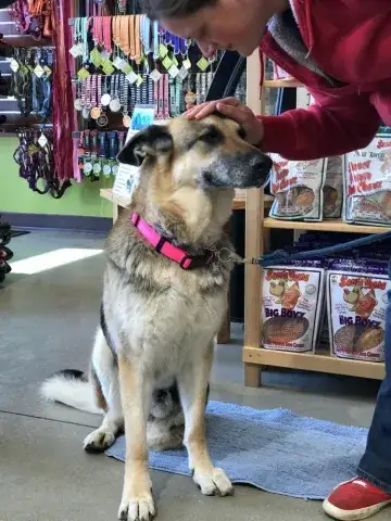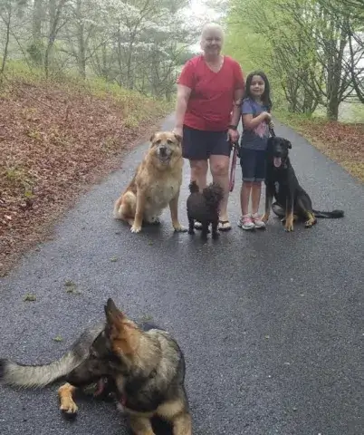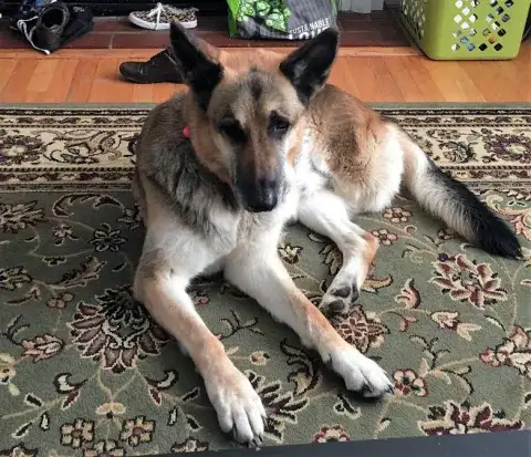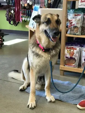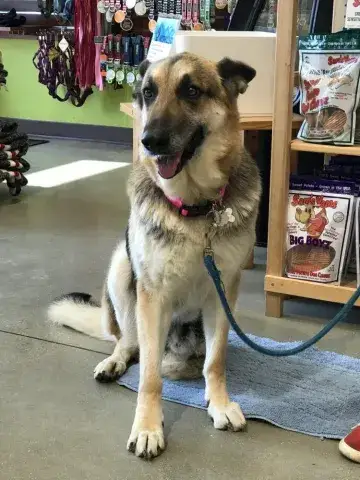 Shosha came to us from a shelter, so we have no history on her. We are learning more about her, so far we know that she is a friendly girl and enjoys the company of other dogs, although she does play rough. She is a big girl at 94 lbs.
