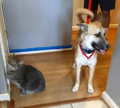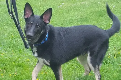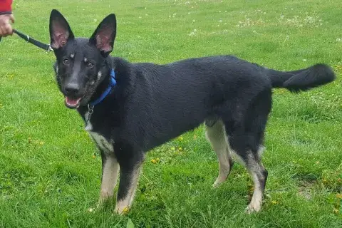 Duncan is a handsome young GSD mix. He has had no training and is full of puppy energy. He adores people, sharing snuggles and puppy kisses. He will require training and guidance so that he understands what is expected of him which will help he be a well behaved family member. Duncan will be a great running or hiking partner, which in turn will help burn some of his energy.