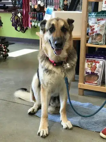 Unfortunately Oso was returned to us. Family members moved into his home, after he had lived there over a year, with small dogs that Oso did not get along with, so he got the boot. He was fine with the neighbors female GSD. He came back to us over weight so he has been put on diet, that along with exercise he should be down a good weight in no time.