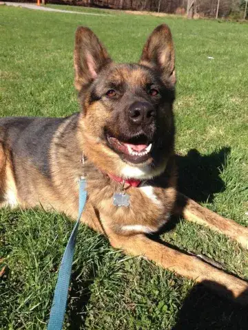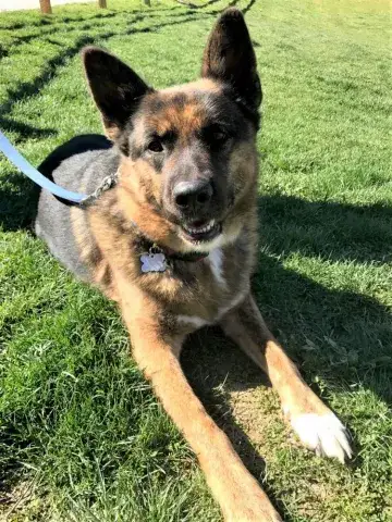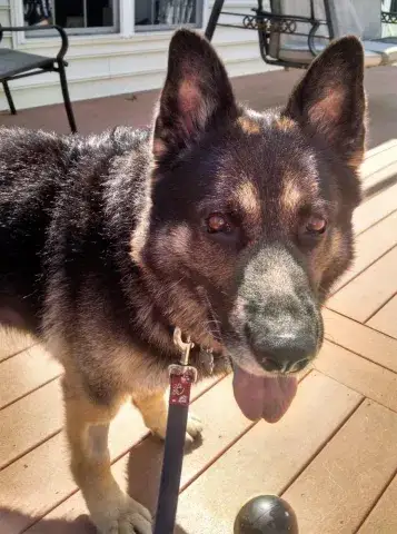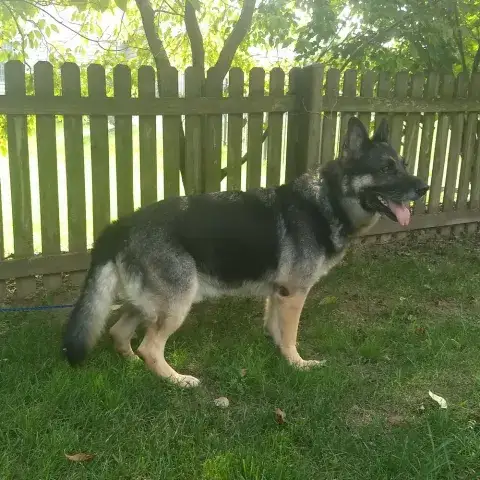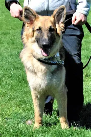 Sterling is a large, handsome sable male GSD. He is young at 3 years old and full of energy. He will need a good training program along with structure and guidance from his family. With Sterling's energy he would make a great running or hiking partner. He is no couch potato, he will require daily exercise to keep his energy in check.