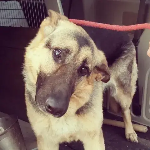 Dutchess came into our care after an urgent last minute plea from the shelter as she needed to be monitored. She had been dumped at a vets office by her person, stating they didn't want her. Dutchess is blind in one eye which was caused by an injury that her person never got medical attention for. She also has a head tilt for reasons unknown at this time. She will be thoroughly examined by our vet and will receive any medical treatment needed once a diagnosis is made. We do know that she had lived her life on a chain. Dutchess has a very sweet personality giving kisses to those she meets. Dutchess deserves a start at a new life, one where her family will properly care for and love her.