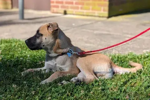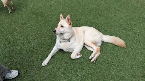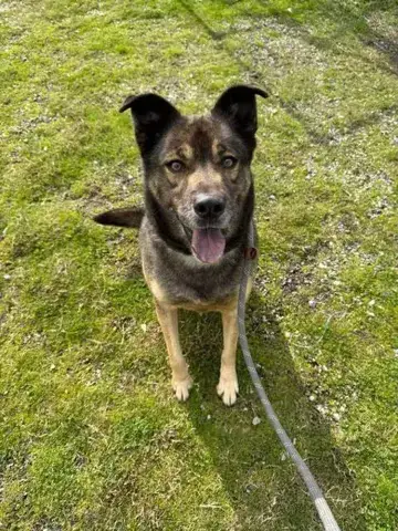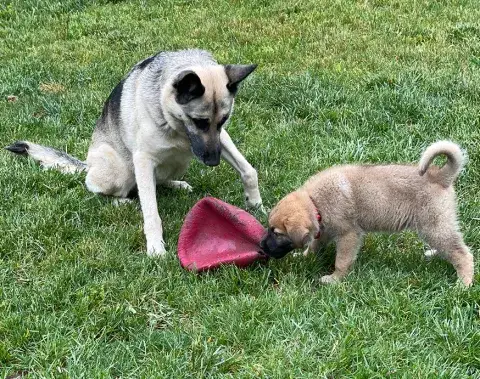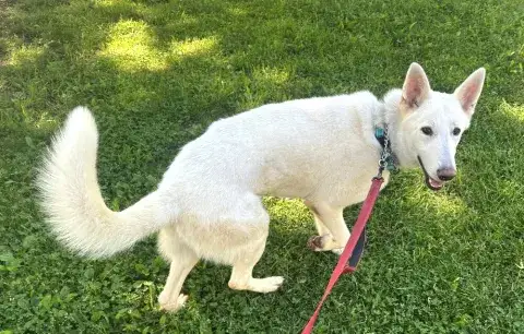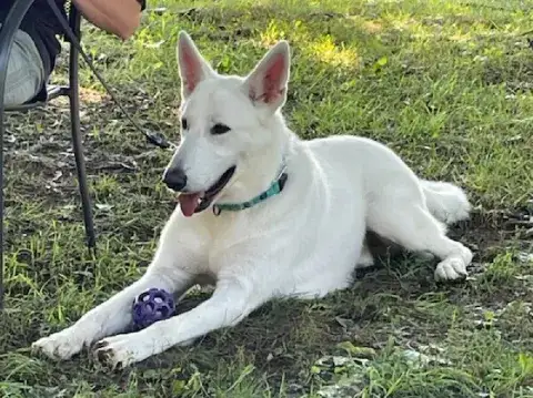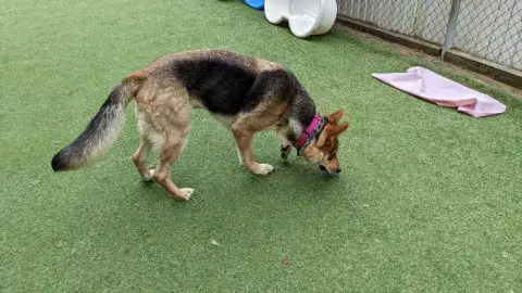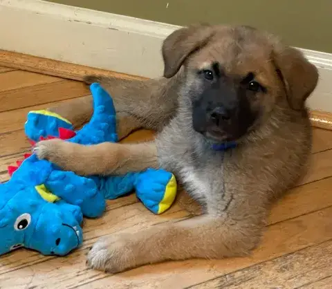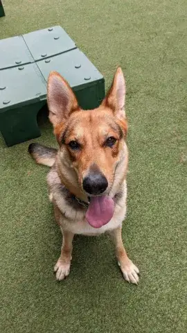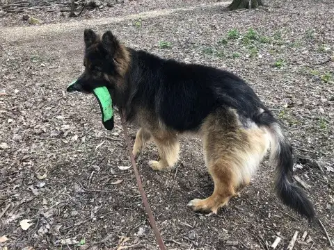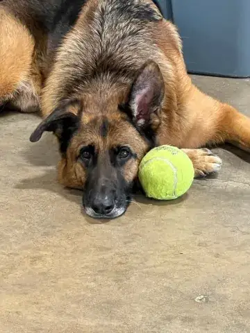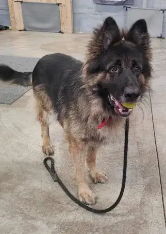 Zeus is a happy, intelligent, and playful guy. He enjoys the company of his people, but also reads the handler very well. As is true of many shepherds, Zeus will look to see what he can and cannot get away with just to make life a little more exciting. As he is a lot of dog and can be pushy, Zeus is most successful with a calm, clear, and confident handler. Having clearly been exposed to toys, Zeus loves to play ball and greatly enjoys squeaky plush toys. He often carries a toy around in his mouth on his daily walks. Capable of easily tearing up toys, Zeus is hoping his forever family has an endless supply of tough toys so that there will be time to play every day. Highly food motivated, Zeus will work for treats and food. He already knows a few commands, such as sit and come. However, as a smart guy, he will see if he can get away with getting treats for free without having to work. Training will go a long way with Zeus. Not only will it help him develop a healthy bond with his forever family, but it will also help him develop the skills needed to become a good canine citizen.