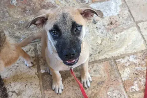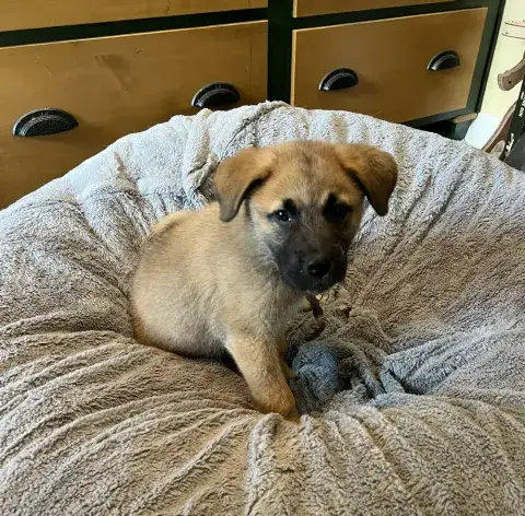 Emmie and her pups have been lucky to have lived in a loving foster family. This gave them all the opportunity to learn some of the ins and outs of living in a home. All of the babies did an incredible job with their foster family and have since moved onto foster homes where they are getting additional love and attention in smaller groups. Cal is friendly, goofy, and an interactive guy. He loves his furry siblings but is also happy to hang out with other dogs and people. Having already begun socializing with new people, animals, and in new environments, Cal is already building a solid foundation. It is imperative that his family continue this process as he moves forward. Cal, like all dogs, will thrive in a home with structure, routine, and leadership. With the right set-up, we know this little sweetheart will be impressive. Although Cal is special, please remember that puppies are a lot of work. They will whine, chew, have accidents, and fill your home with endless puppy antics. With time, patience, and training, Cal will become a stable and confident adult. Cal is looking for a forever family that will cherish him for a lifetime. If he sounds like the right match for your family, ask to meet him today!
