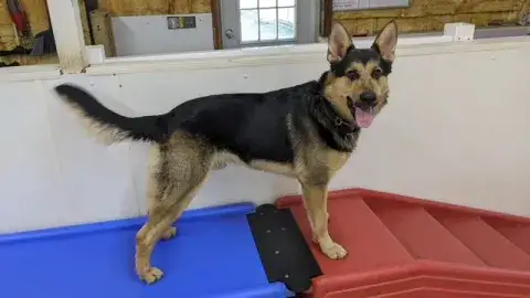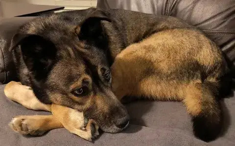 Amir is a big, friendly, and confident guy. It is very evident that someone along his journey socialized him with people and other animals. Although he has been through a lot over the last few weeks, Amir remains stable and interested in meeting new people. He is looking for a forever family that will adore him just as much as we do. As he moves forward, Amir will meet with success when provided with the structure, routine, and leadership that all GSDs crave and deserve. Training is also critical to his success. Not only will training help Amir build a strong and healthy bond with his forever family, but it will also help him develop into a good canine citizen. We do not know much about Amir's past, but we do know that he does understand some of the ins and outs of living in a household. He is beyond happy to stretch out on a comfortable bed and check in for bedtime snuggles. Although Amir has clearly had the luck of living in a home at one point, he will need time to adjust to the routines and expectations of his forever family. Amir is looking for a family that will love him for a lifetime. Could that family be you?