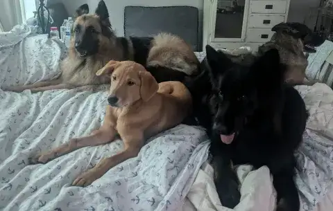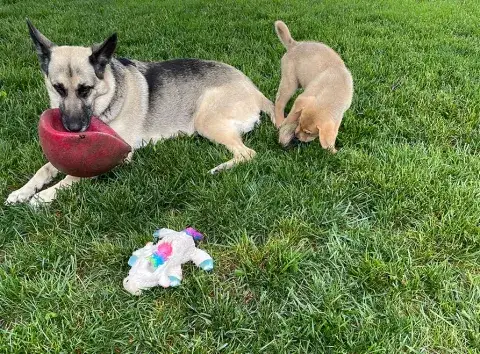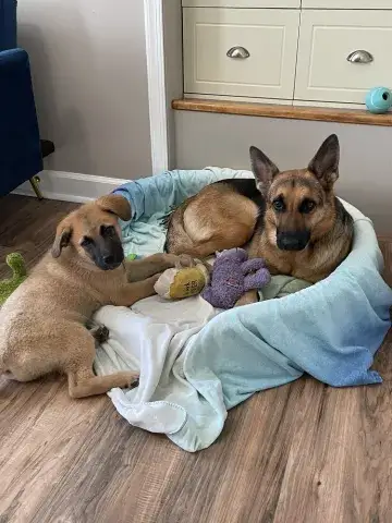 Zeke and his buddy, Koda, were absolutely adored by their dad. Both dogs were raised in a loving household that clearly understood the ins and outs of owning, socializing, and training a shepherd. Although he gave them everything they needed and more, due to a change in circumstances, the boys' dad needed to rehome them. This was a very difficult decision, but he knew that the boys deserved more than he could give. When asked if MAGSR could welcome Zeke and Koda into the family, our team stepped forward to ensure that both boys were safe and loved.
