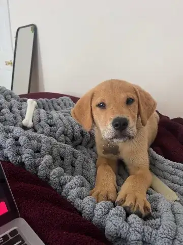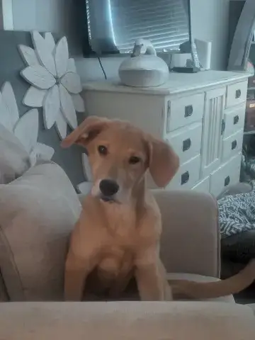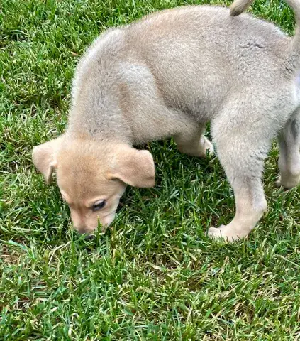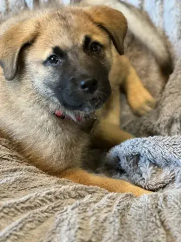 Emmie and her pups have been lucky to have lived in a loving foster family. This gave them all the opportunity to learn some of the ins and outs of living in a home. All of the babies did an incredible job with their foster family and have since moved onto foster homes where they are getting additional love and attention in smaller groups. Meenie is a sweet and snuggly girl who loves other dogs of all sizes and thinks that cats could be pretty cool too, if only they'd play with her. Meenie loves her chew toys and is slowly catching on to the joys of fetch. Meenie is an intelligent observer pup - she's bold enough to approach a stranger or new animal and smart enough to take their cues regarding how to proceed. Meenie is already well on her way to being crate trained and housebroken with only an occasional accident in the home. Like any puppy, she thrives when supported by clear boundaries, patience, and a mountain of love and chew toys. This is so helpful when learning the routines of her home. Having already begun socializing with new people, animals, and in new environments, Meenie is already building a solid foundation. It is imperative that her family continue this process as she moves forward. With the right set-up, we know this little darling will be impressive. Although Meenie is special, please remember that puppies are a lot of work. They will whine, chew, have accidents, and fill your home with endless puppy antics. With time, patience, and training, Meenie will become a stable and confident adult. Meenie is looking for a forever family that will cherish her for a lifetime. If she sounds like the right match for your family, ask to meet her today!