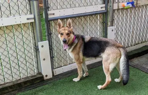 Bodacious Bubba and his pal, Suzie, were picked up as strays in the south. Although both dogs were friendly, when the pair arrived in an overcrowded shelter they were on borrowed time. Unfortunately, with numbers at critical levels in most places, many shelters are struggling to keep up with the number of animals needing placement. Hoping to ensure that as many animals as possible make it out alive, shelter staff are doing everything they can to transfer dogs to reputable groups. When Bubba and Suzie were not claimed by a family, they were both placed on the list to be euthanized. Knowing that these dogs deserved the chance to move forward, a plea went out to the GSD community for help. Although we were also sitting near capacity, we knew both dogs were out of options. Team MAGSR began working with other groups in the area to pull both dogs to safety at the last second.