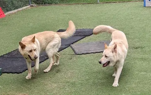 Guy and Fieri were picked up as strays in the south. When they arrived at animal services it was highly evident that they could use a little extra TLC. Underweight, dirty, and needing some medical support, shelter staff immediately moved forward to support both boys. Although the boys had clearly been through a lot together, everyone was simply amazed by how friendly and interactive Guy and Fieri are with everyone they meet. Although shelter staff did everything they could to help both boys move forward, they felt that it would be best if the boys were moved into rescue so that they could find a home with room for two. When asked if we could support Guy and Fieri in the MAGSR family, we immediately stepped forward.