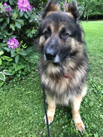 Zeke is a big, goofy, playful guy. Clearly well socialized with people and dogs, Zeke has a stable and confident personality. With his stunning looks and impressive personality, this guy easily wins over everyone he meets. Having lived in a GSD savvy household, Zeke has a strong foundation. However, as is true of all shepherds, he will only thrive when provided with structure, routine, and leadership. An intelligent guy, Zeke will take advantage of a weak handler just to see what kind of mischief he can get into. When provided with consistency and clear expectations, Zeke rises to the occasion. As an active guy, Zeke is looking for a family that will exercise both his body and his mind on a daily basis. This will help Zeke maintain his amazing personality. Although Zeke has had some training already, he is looking forward to attending training class with his forever family. Training will not only help Zeke bond with his forever family, but it will also help him develop the skills needed to become a good canine citizen. Having lived in a home, Zeke understands many of the ins and outs of the household. He is already housebroken and crate trained. However, as is true for any new dog, Zeke will need time to adjust to the routines and expectations of his forever family.