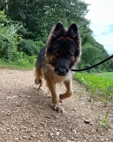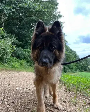 Koda is a big, sweet, affectionate guy. Clearly well socialized with people and dogs, Koda has a stable and confident personality. He is patient, observant, and doesn't miss a beat. With absolutely stunning looks and a solid personality, Koda has the type of personality that easily wins over everyone he meets. Having lived in a GSD savvy household, Koda has been given a strong foundation for success. However, as is true of all shepherds, he will only thrive when provided with structure, routine, and leadership. An intelligent guy, Koda reads the handler well. He understands clear expectations and responds accordingly. When provided with consistency and routine, Koda rises to the occasion. As a young guy, Koda is looking for a household that will provide him with daily exercise for both his body and mind. This will help him maintain his impressive personality. Although Koda has had some training already, he is looking forward to attending training class with his forever family. Training will not only help Koda bond with his forever family, but it will also help him solidify the skills needed to become a good canine citizen. Having lived in a household, Koda understands many of the ins and outs of living in a home. He is housebroken and crate trained. However, as is true of any new dog, Koda will need time to adjust to the routines and expectations of his forever family.