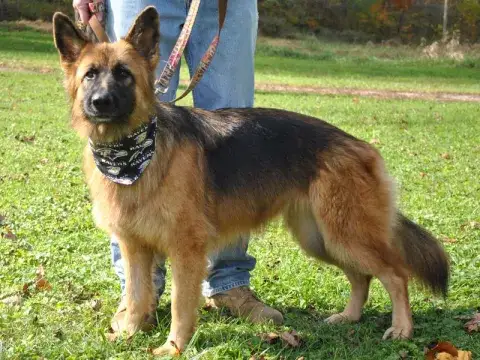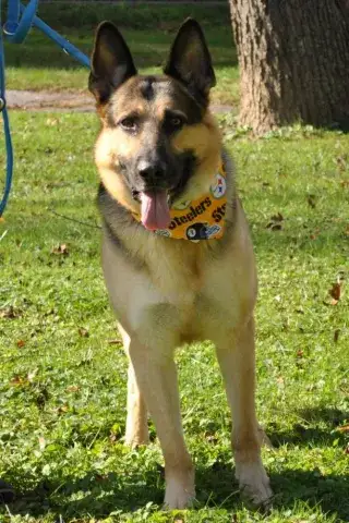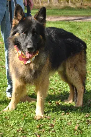 Ace was surrendered by his family as he was not getting along with the older male GSD in the home. His family loves him very much, but realized it would best for all that Ace find a new home. Ace lived with another male and female GSD, he did not have any issues with the female. He has been around children and did well, but he does get spoked when they run up on him, for this reason it would be best that Ace only go to a home with older respectful children. Ace loves attention from his family, he is crate trained and has good house manners. Ask to meet this handsome boy.