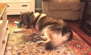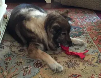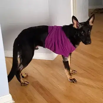 Rougie came to us as an owner surrender, as her family could no longer care for her. Rougie has been stable on enzymes and living with Exocrine Pancreatic Insufficiency (EPI) for two years. EPI can be very well controlled with proper nutrition and adding enzymes to his food which helps with digestion. More information can be found at this link: http://www.epi4dogs.com along with before and after pictures of dogs that have EPI.