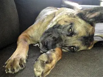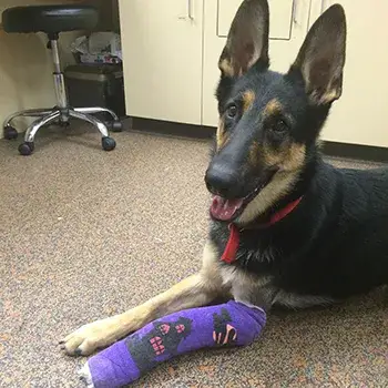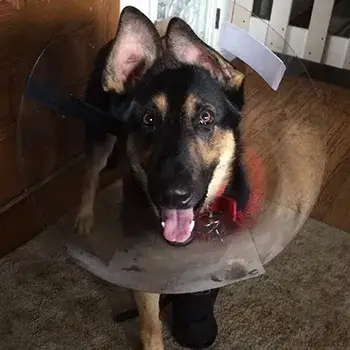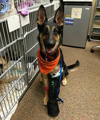 Hemlock was very much loved by his family but his owner was deployed and his family looked to MAGSR to find Hemlock a loving and caring home. He is a beautiful boy who is very friendly with everyone he meets. He loves to play fetch, Frisbee and loves to cuddle. He has carpus valgus in his left front joint. It has been established that this condition most commonly occurs in rapidly growing medium to large breed dogs. Some evidence suggests male puppies are more likely to be affected by this condition. This condition does not stop Hemlock from running and playing and having fun. If you can provide this handsome boy a loving home please ask to meet Hemlock today.