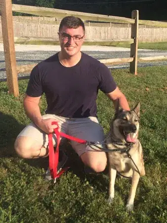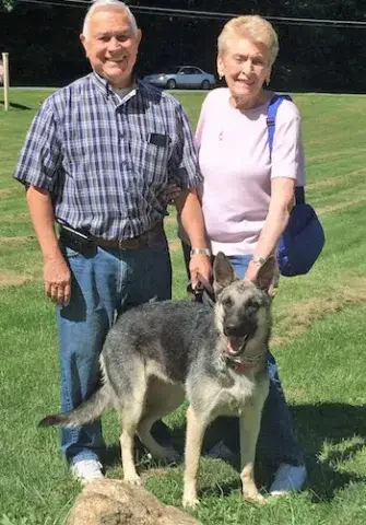 Sherlock initially came to MAGSR, due to his owner’s health, from a home with other Shepherds and got along well with them. Over the last 18 months, Sherlock has been in a home without other dogs and has not interacted with other dogs, so it is unknown if he is still good with other dogs. Sherlock has a high prey drive and will chase rabbits and squirrels. Sherlock is friendly with the humans that he meets and is very active with a ton of energy, much more than expected for his age. Sherlock enjoys playing catch and swimming. Sherlock needs training, a strong handler (he’s a strong boy), and a strict regimen.