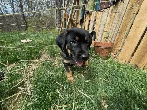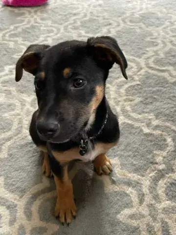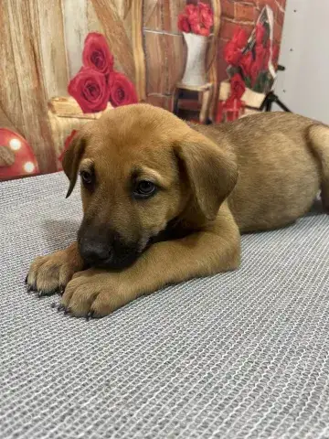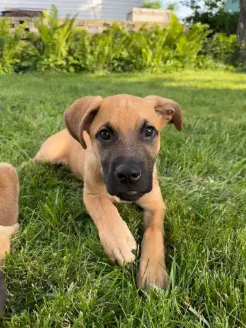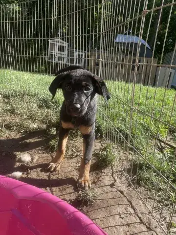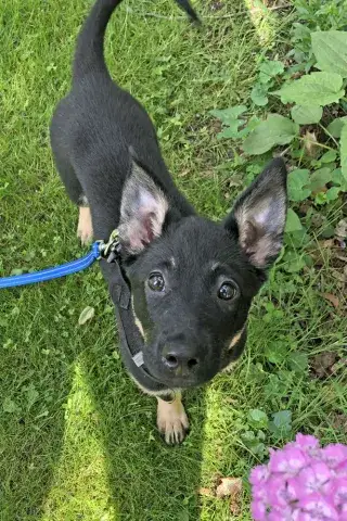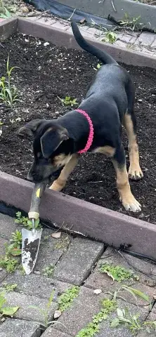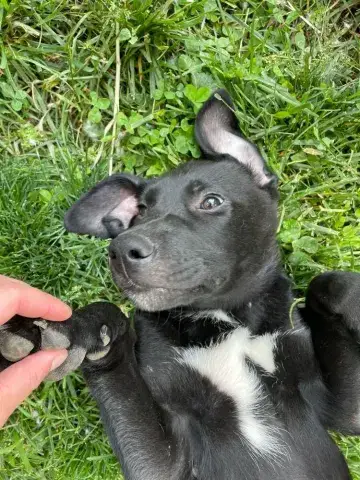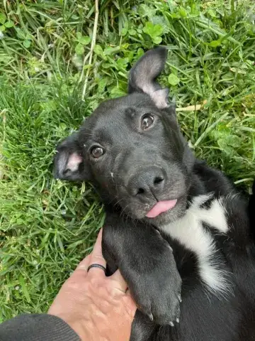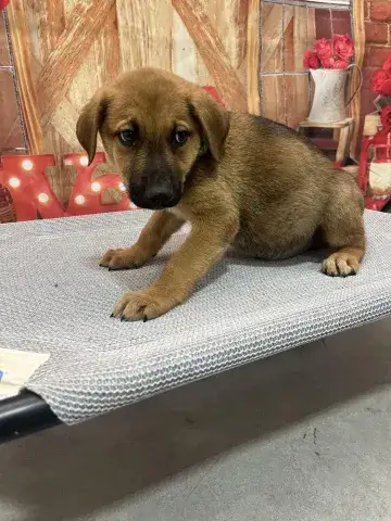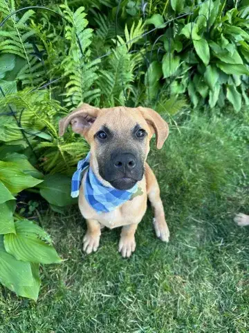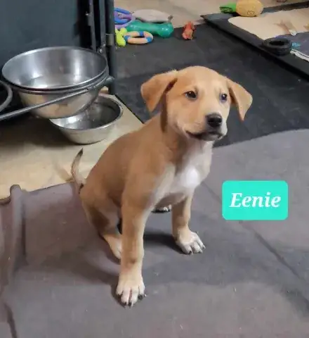 Emmie and her pups have been lucky to have lived in a loving foster family. This gave them all the opportunity to learn some of the ins and outs of living in a home. All of the babies did an incredible job with their foster family and have since moved onto foster homes where they are getting additional love and attention in smaller groups. Eenie is a curious pup who would love nothing more than to be by her person 24/7! She is inquisitive and confident, enjoying every person, dog, and cat that she has met. She loves a good game of fetch followed by a cuddle session. Eenie is already mostly crate trained and is learning her housebreaking manners rapidly. Eenie is keen to please and is a very fast learner. Like any puppy, Eenie thrives when supported by clear boundaries, patience and a mountain of love and chew toys as she learns the routines of her new home. Having already begun socializing with new people, animals, and in new environments, Eenie is already building a solid foundation. It is imperative that her family continue this process as she moves forward. With the right set-up, we know this little love bug will be impressive. Although Eenie is special, please remember that puppies are a lot of work. They will whine, chew, have accidents, and fill your home with endless puppy antics. With time, patience, and training, Eenie will become a stable and confident adult. Eenie is looking for a forever family that will cherish her for a lifetime. If she sounds like the right match for your family, ask to meet her today!