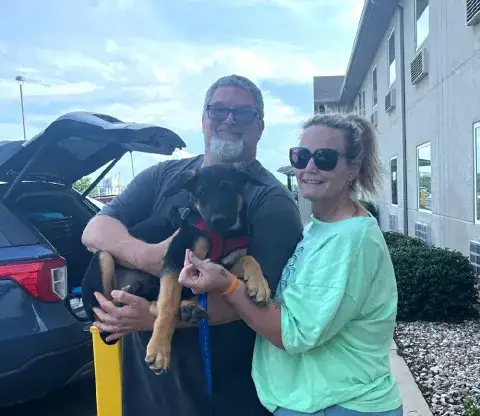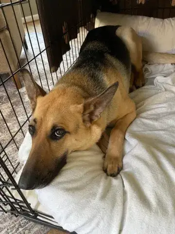 Stunning Suzie and her buddy, Bubba, were picked up as strays in the south. Although both dogs were friendly, when the pair arrived in an overcrowded shelter they were on borrowed time. Unfortunately, with numbers at critical levels in most places, many shelters are struggling to keep up with the number of animals needing placement. Hoping to ensure that as many animals as possible make it out alive, shelter staff are doing everything they can to transfer dogs to reputable groups. When Suzie and Bubba were not claimed by a family, they were both placed on the list to be euthanized. Knowing that these dogs deserved the chance to move forward, a plea went out to the GSD community for help. Although we were also sitting near capacity, we knew both dogs were out of options. Team MAGSR began working with other groups in the area to pull both dogs to safety at the last second.