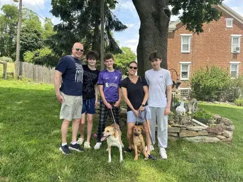 Amazing Andora and her "A Litter" puppies (Annette, Aime, and Abu) were dumped at a crowded shelter. With limited resources and overwhelming numbers, the shelter could not provide for this family. Although they did everything they could to help all members of the family move forward, shelter staff knew that without rescue help, this family would likely be euthanized as spaces are simply not available. Fortunately, rescue groups began working together to help the entire family move forward safely. When asked if we could provide a safe place to land, we were lucky to be able to team up with another local group in order to ensure that all members of the family moved forward safely.