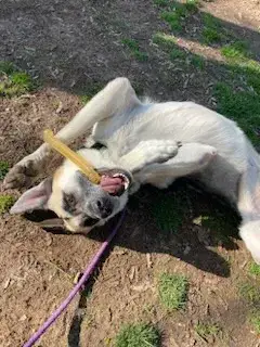 Pyro is a survivor. He and over 40 other animals (many of which were dogs) were rescued when their home caught fire. Fortunately, neighbors saw smoke rising from his home and called for help. In a matter of minutes, the family (both human and canine) lost their home. A local shelter welcomed all of the animals from the fire into their care. However, with such a large number of animals needing help to move forward, they began reaching out to local groups with the hope that the animals involved in the fire would find safe and loving forever families. As survivors, the shelter knew that these animals may need a little extra time and patience to heal from the trauma of the fire. When asked if we could help Pyro move forward in the safety of the MAGSR family, we immediately agreed.