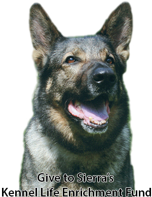 MAGSR has created Sierra's Kennel Life Enrichment Fund. This fund allows those dogs, who are currently not in foster homes, the opportunity to receive their own special gifts. The amenities available to them are varied, and can be anything, from "happy hour" (frozen peanut butter stuffed toys, aka Sierra's kongs), to special chews and beds, to bath or grooming sessions, to doggie daycare, which is particularly important for those youngsters who so desperately need to be socialized. While not everything is suitable to all kennel dogs, there is something for everyone to make their lives in the kennel a little more enjoyable. About Sierra Downs Sierra Downs was just under 16 years old, when her soul mate and mom, Sue Downs, had to say good bye to her in June 2014. Sierra is a MAGSR alumna and was seven years old when she found her way into Sue's heart and home. In Sierra's lifetime, Sue, one of MAGSR's volunteers, had always made sure that those MAGSR dogs who weren't living in foster homes, got special treats instead, while waiting for their forever homes. The peanut butter filled toys were affectionately called "Sierra's kongs" and are now available during kennel happy hour.