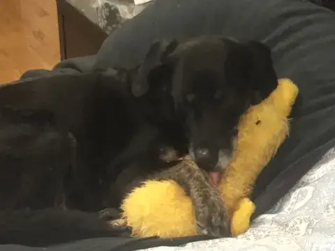 It is with tremendous sadness that I report to you the passing of our precious Candy. We had to euthanize her on September 21st; She was eight years old. Tragically,  Candy slipped a disk in her back and our veterinarian tried to heal her, but apparently there is no reasonable treatment for dogs for with her type of injury. Candy was so sweet, loving, and always wanted company from mommy and daddy that they thought it fitting to name her just that, Candy. We were a part of the majority who gave our furbabies nicknames. A few of hers were Candy Pants, Candy Cane, Pudding, and Black Velvet. Eager to please and extremely intelligent during her first week she was able to learn how fetch my newspaper. Candy also loved playing with her indestructible ball and would play in the yard for hours, which was a great pleasure for us as well. She became the fearless protector of her family and home, but still loved having visitors over with our permission.  We will never be able to thank MAGSR enough for trusting us to care for Candy and Remington. They will occupy a special place in our hearts forever.